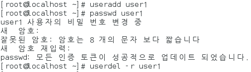 ※ userdel 에 -r 옵션을 주면 홈디렉터리도 같이 삭제됩니다.