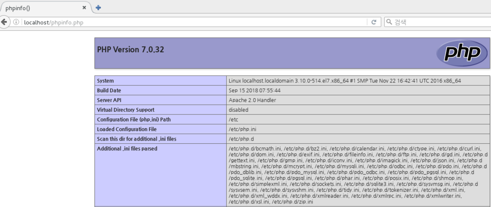 vi /var/www/html/phpinfo.php // phpinfo 확인 페이지 생성
