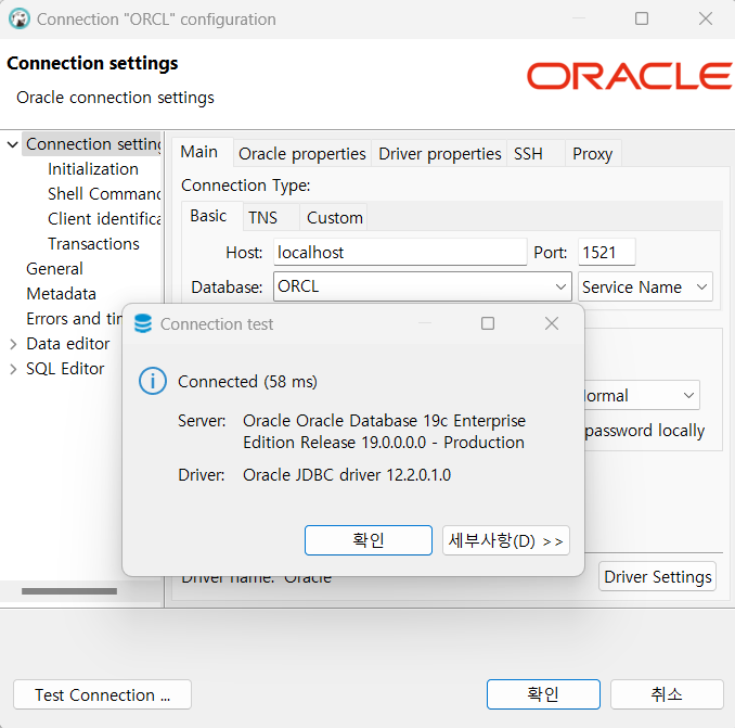 위에 서 포트 1522로 설정하지마세요 변경하기 귀찮네요...