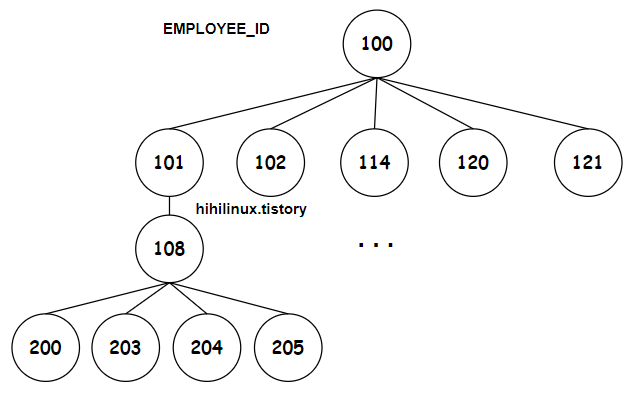 위와 같이 EMPLOYEE_ID가 PK로 존재하고, 해당EMPLOYEE_ID를 관리하는 MANAGER_ID가 존재하는 상황이다.
