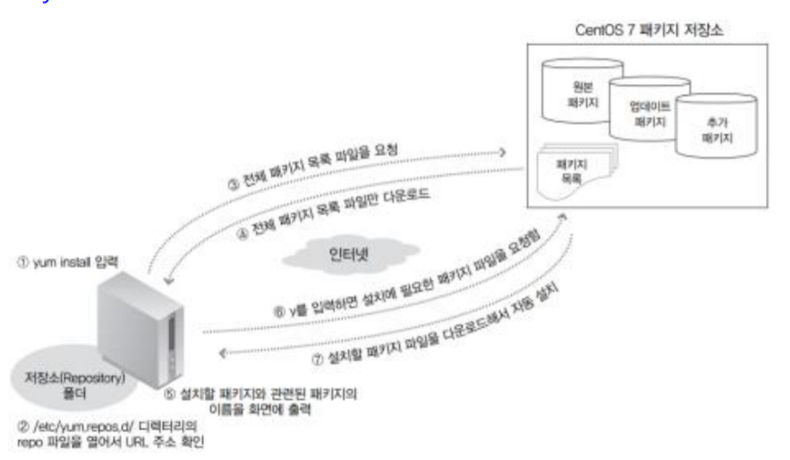 하지만 yum 명령어를 이용한다면 인터넷을 통해 모든 CentOS7 패키지를 언제든 다운로드 해서 설치할 수 있습