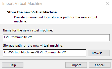 위 사진 처럼 나오면 경로와 virtual machine 이름을 정해주고 Import를 눌러줍시다.
