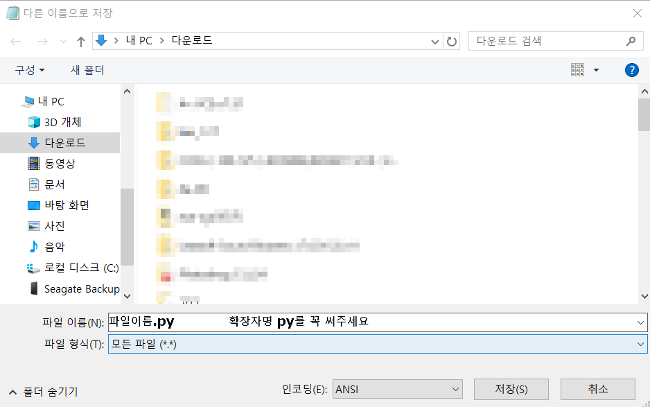 위 스크립트를 메모장을 열고 복사 붙여넣기를 하고 저장해줍시다.
