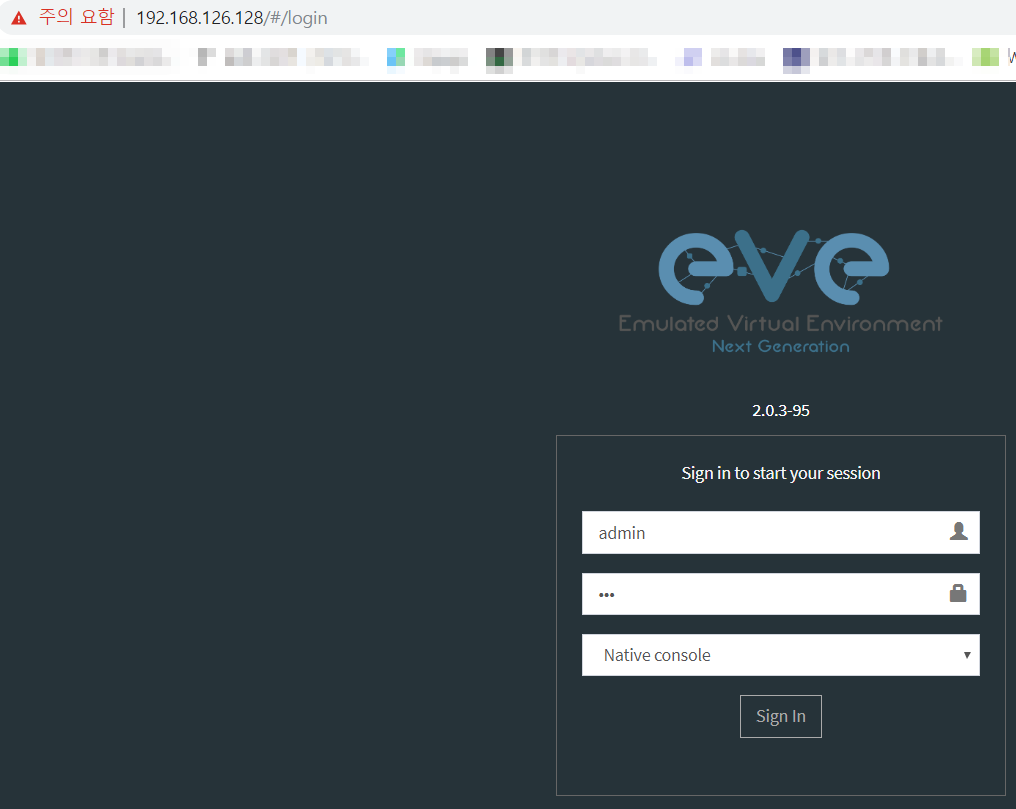 위 URL에 주소를 적어주고 ID : admin Password : eve를 적어줍니다.