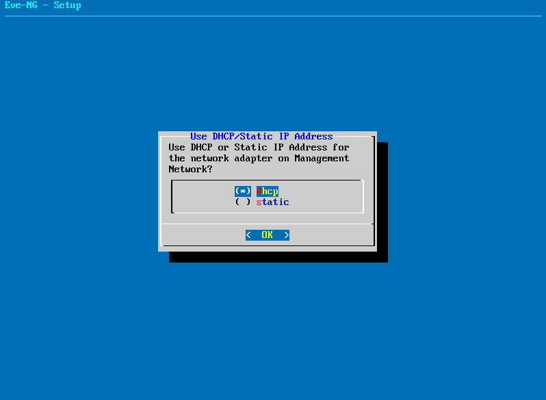 ID는 root password는 eve를 입력해주면 다음과 같은 설정화면으로 넘어가게됩니다.