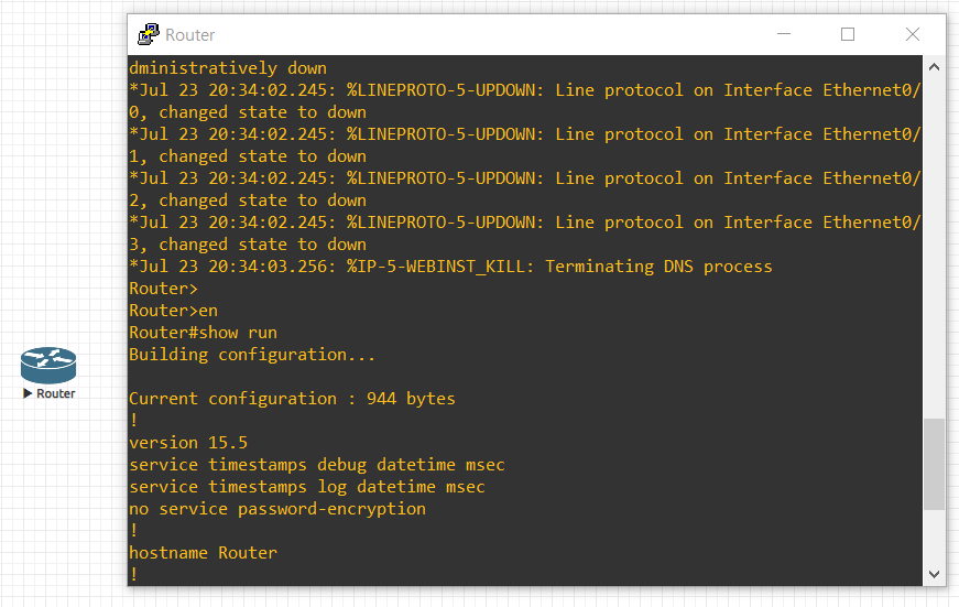 라우터를 실행 후 터미널 접속까지 잘되네요.