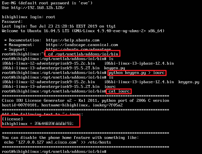 iourc파일을 cat 명령어로 확인하면 라이센스가 생성된 것을 확인할 수 있습니다.