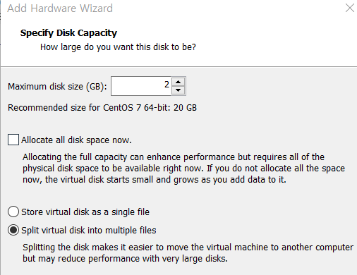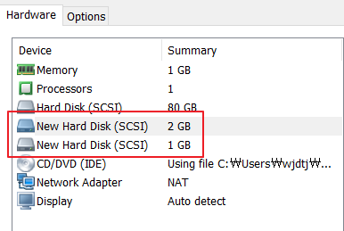 원활한 실습을 위해 하드디스크를 최소 두개에서 세개를 생성해주세요.