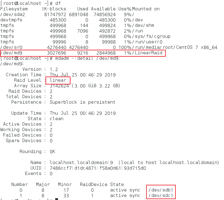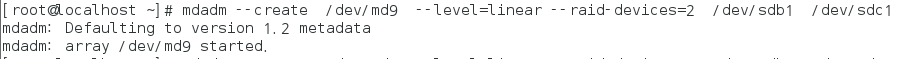 #mdadm --create /dev/md9 --level=linear --raid-devices=2 /dev/sdb1 /dev/sdc1