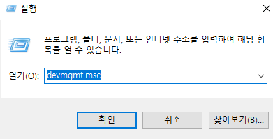 위와 같이 입력시 장치관리자창이 활성화