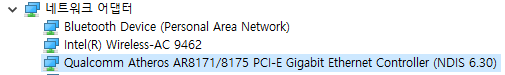 네트워크 어댑터에서 자신의 랜카드 선택